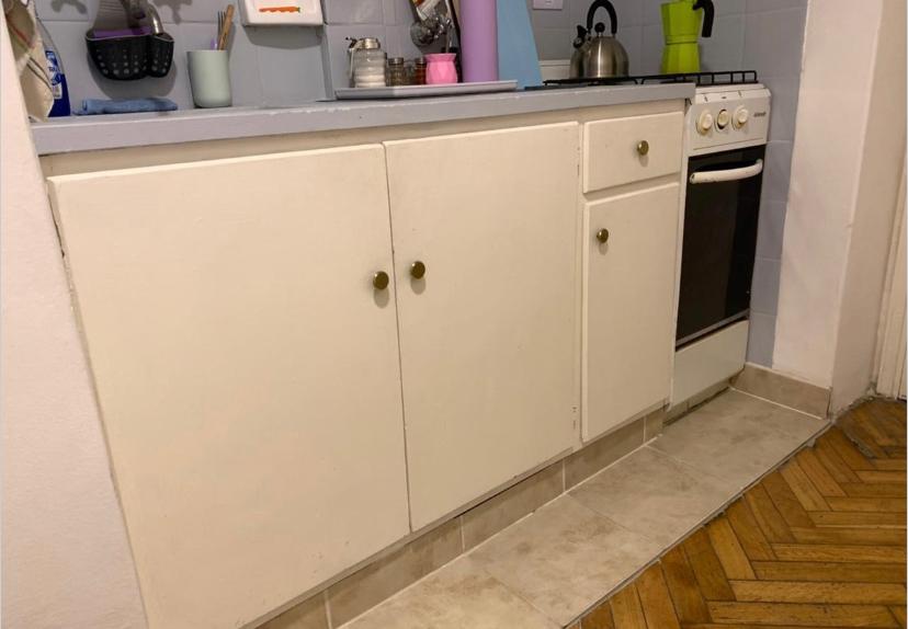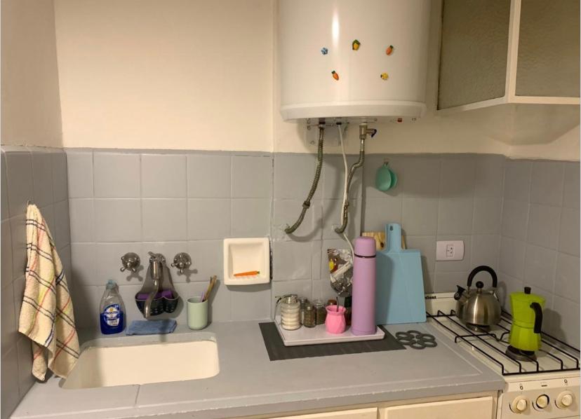 Amplio ambiente con placard, al frente con balcón, kitchinette con cocina, parquet plastificado, óptimo estado. Muy Luminoso !!!!